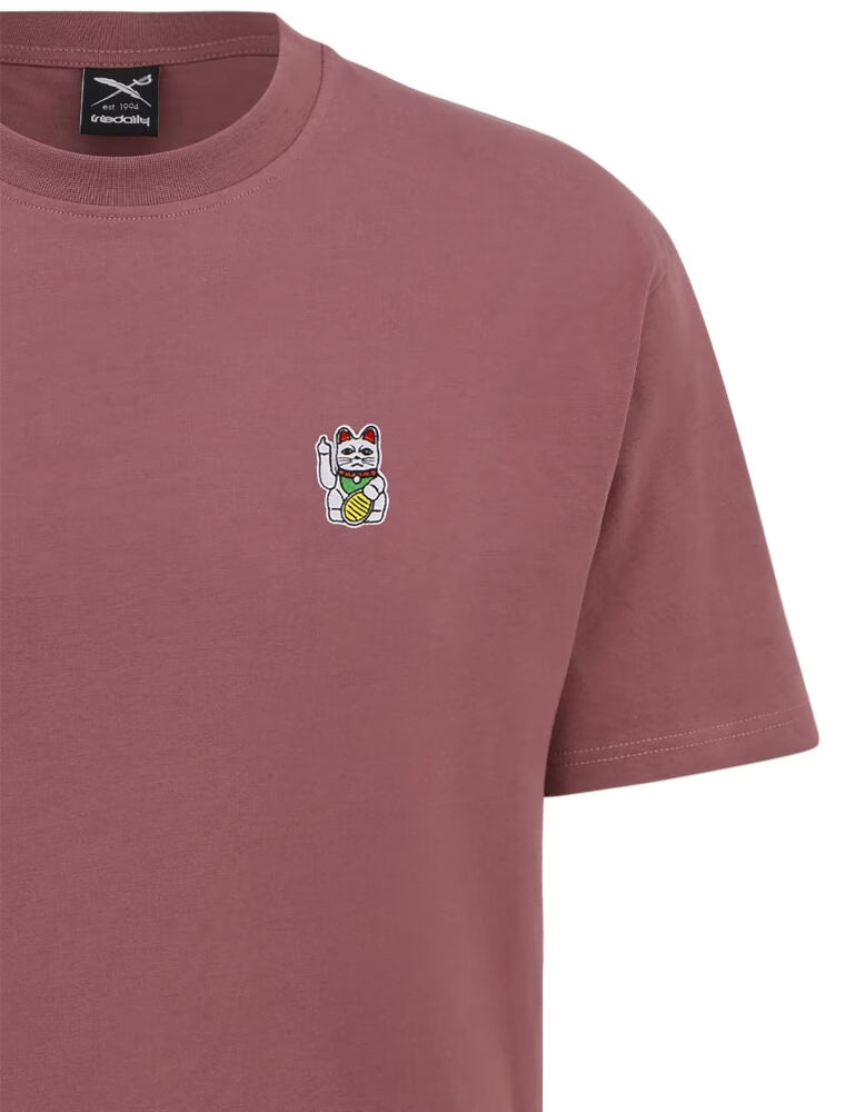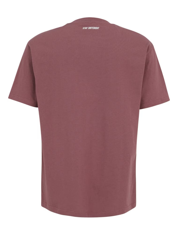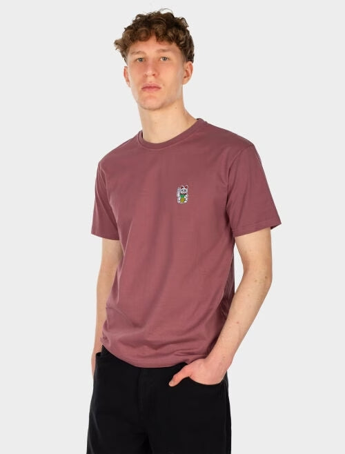 Iriedaily Bye Bye Plum T-Shirt aus Bio-Baumwolle in Plum mit kleiner Bruststickerei und Rundhalsausschnitt, nachhaltiges Herren T-Shirt mit Artwork von Goodmood.